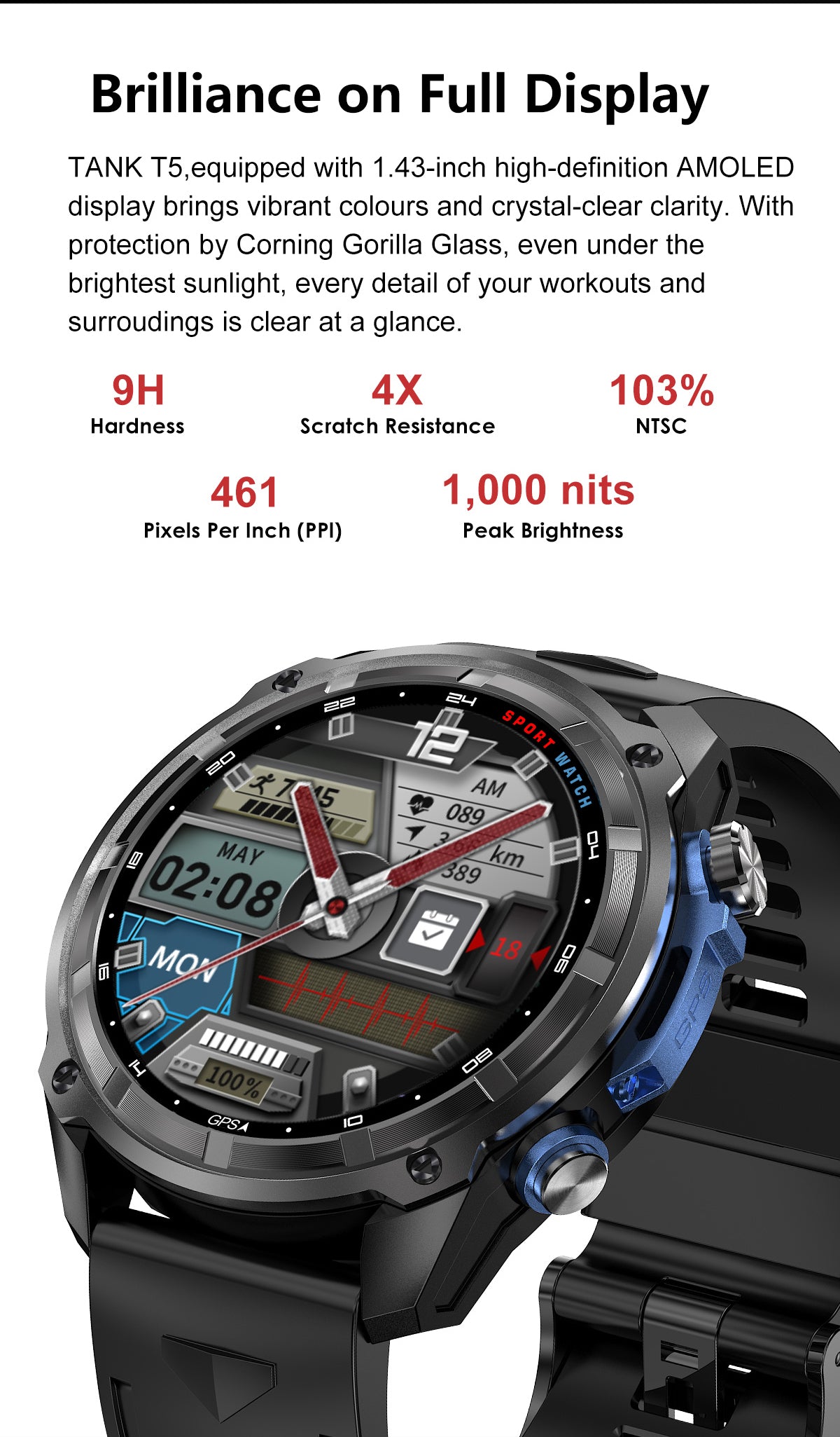 Είναι το Tank T5 κι έχει ότι έχουν τα κλασσικά smartwatch αλλά και κάποια επιπλέον που το προσδίδουν τον χαρακτήρα του.