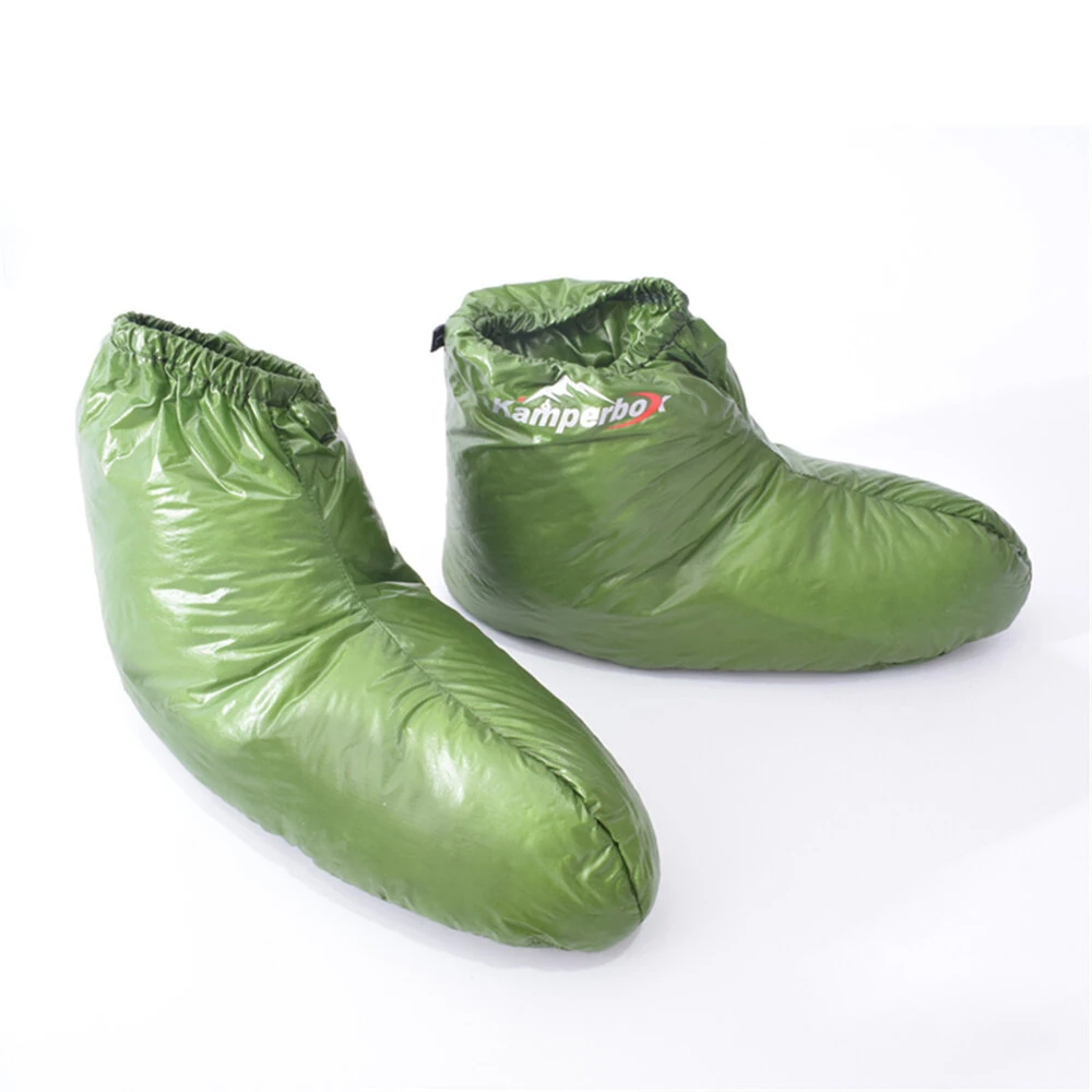 Kamperbox Outdoor Winter Down Booties Socks Warm Soft Windproof Long Sleeping Slippers with Adjustable Drawstring Men Women Filled Boots