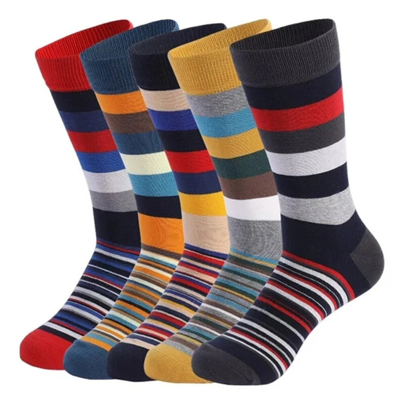 5 Pairs Mens Dress Socks Geometric Pattern Funny Casual Socks Pack Colorful Striped Cotton Novelty Business Socks
