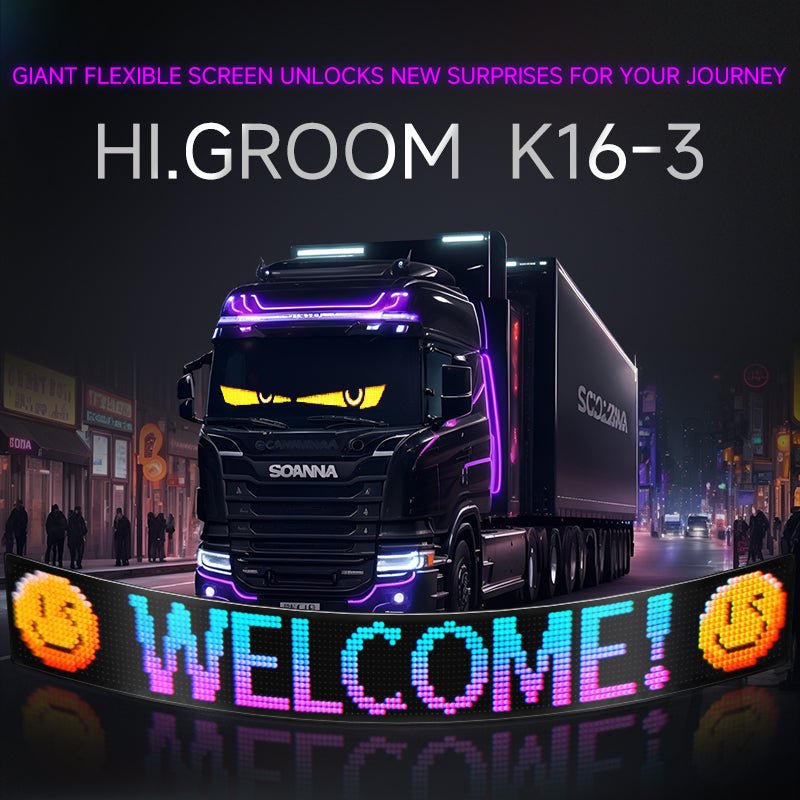 TUERBB K16-3 Bluetooth Programmable LED Flexible Screen For Cars And Trucks – Customizable Animation Display With IP65 Rating