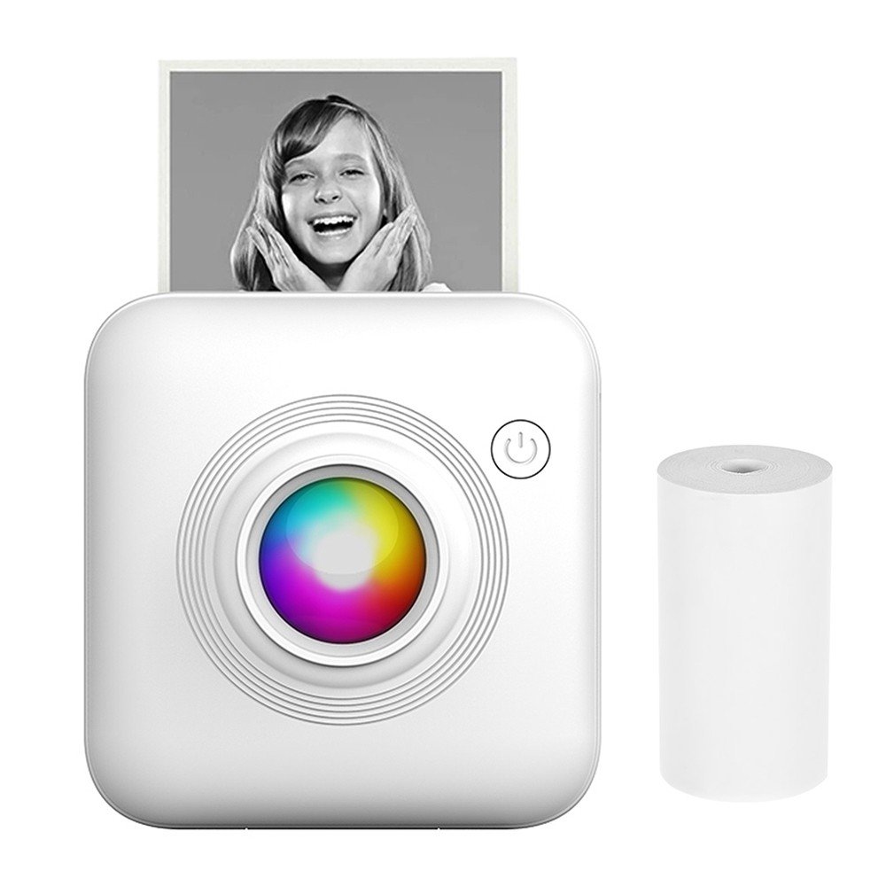 Mini Pocket Printer Portable 58mm Thermal Printer Machine with 1 Roll Thermal Paper Gift for Kids Study Work Office Compatible with Android iOS System