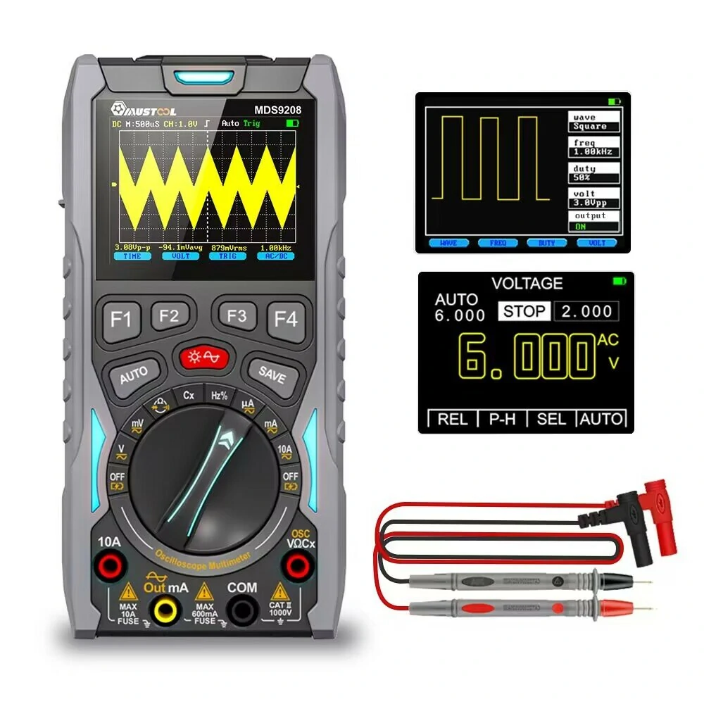 MUSTOOL MDS9208 3In1 Oscilloscope Multimeter Signal Generator 12MHz 50Msps Portable High Storage Capacity Low Power Consumption