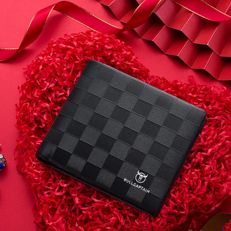 BULLCAPTAIN Cow Leather Men Short Wallet with Chain Business Retro Double Zipper Coin Purse Bags Multi Card Slot Credit Card Holder, Male Zipper Wallet Money Clutch