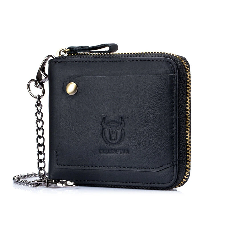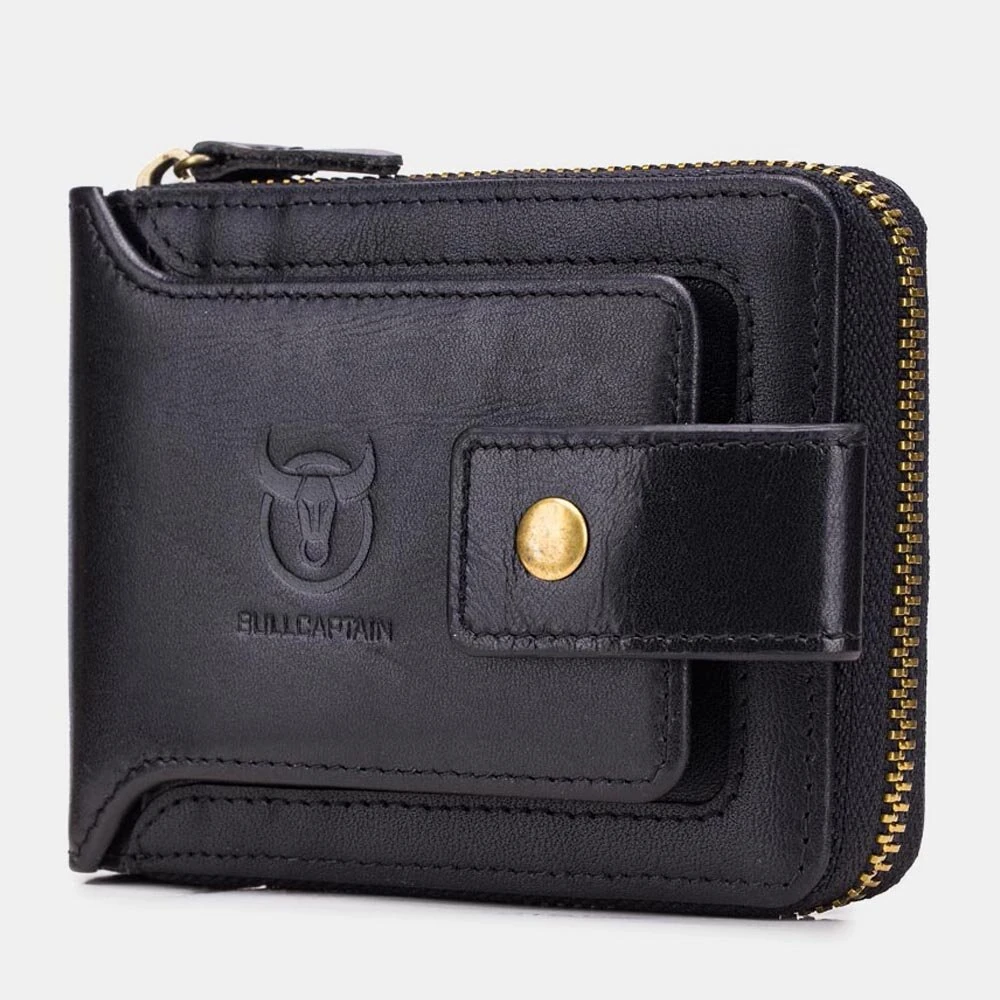 BULLCAPTAIN Men Short Wallet RFID Blocking Card Holder Cowhide Coin Purse Retro Genuine Leather Clutch Zipper Male Money Bags