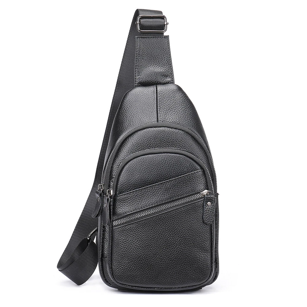Ekphero Men Genuine Leather Chest Pack Casual Sport Sling Shoulder Backpack Fashion Crossbody Bags Black Travel Chest Bag