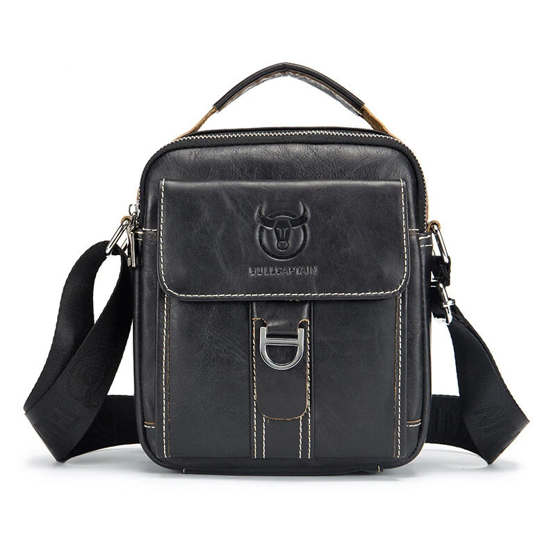 BULLCAPTAIN Genuine Leather Mens Shoulder Bag Business Crossbody Bag Male Briefcase Messenger Bag Men’s Casual Handbags Vintage Flap Clutch Purse Tote