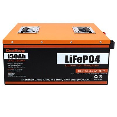 Cloudenergy 24V 150Ah LiFePO4 Battery Pack, 3840Wh Energy, 6000+ Cycles, Built-in 100A BMS