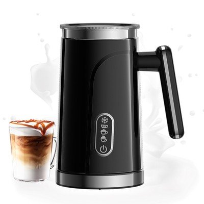 BioloMix BMF101 4 in 1 Electric Milk Frother and Warmer, Automatic Hot and Cold, for Latte, Foam Maker, Hot Chocolates, Cappuccino – Black
