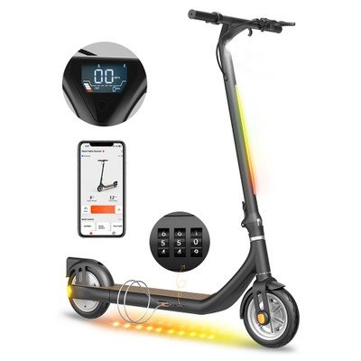 Atomi Alpha Folding Electric Scooter 9 Inch Tires 350W Motor (Peak 650W) 36V 10Ah Battery for 25 Miles Range 25Km/h Max Speed 120KG Max Load Support App Control Built-in Combination Lock – Black