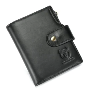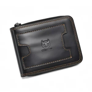BULLCAPTAIN Genuine Leather Zippered Men’s Wallet Cowhide RFID-blocking Multi Card Slots Coin Money Purse