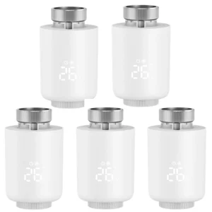 5Pcs Tuya Zigbe Smart Thermostat Radiator Valve Temperature Schedule Setting Window Open Detection Function APP Remote Voice Control Work with Alexa Google Assistance