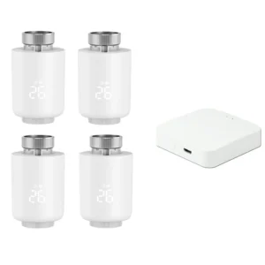 4Pcs Tuya Zigbe Smart Thermostat Radiator Valve Temperature Schedule Setting Window Open Detection Function APP Remote Voice Control Work with Alexa Google Assistance