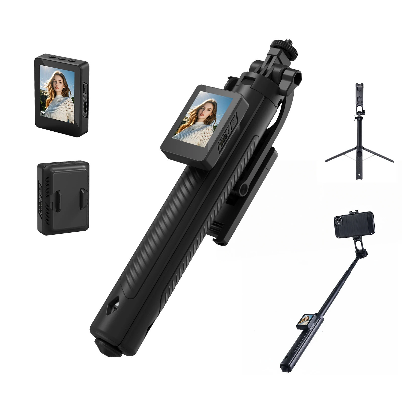 D11 Screen Mirroring Selfie Stick with Tripod 180 Rotation 4 Brightness Levels Portable Vlog Stand for iOS Android