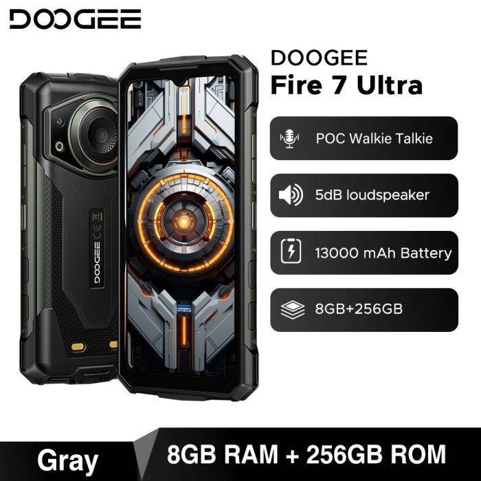 DOOGEE Fire 7 Ultra 5G Rugged Phone 32GB 256GB 13000mAh Battery Dimensity 6300 125dB Speake POC Walkie Talkie NFC (Version: 8G+256GB)