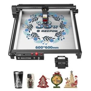Mecpow X5 Pro Laser Engraver Cutter, 33W Laser Power, Auto Air Assist, 0.08×0.1mm Laser Spot, 28000mm/min Engraving Speed, Safety Lock, Emergency Stop, Flame Detection, Offline Engraving, 600x600mm