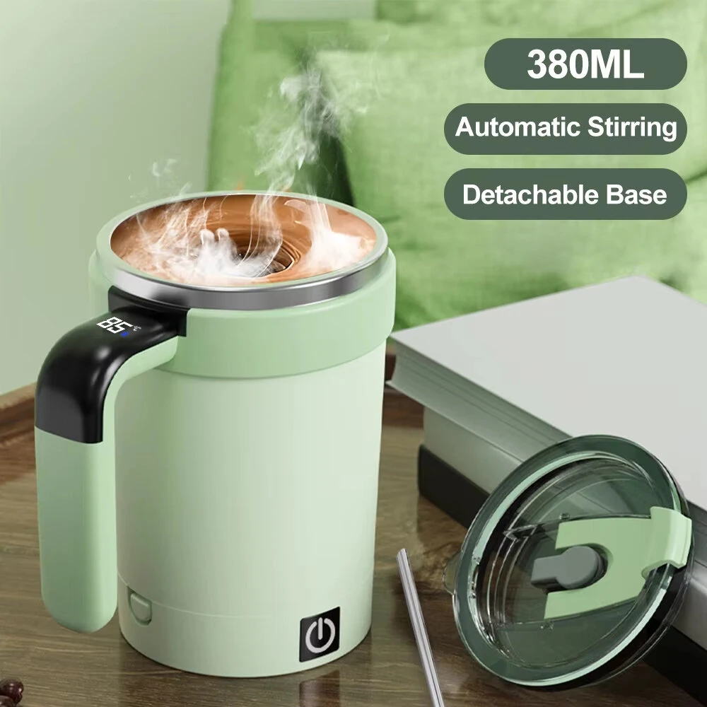 IPRee 380ML Detachable Automatic Magnetic Stirring Mug with Straw & Lid Stainless Steel Waterproof USB Electric Mixing Coffee Mug