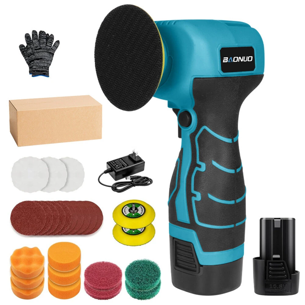 BAONUO Cordless Car Polisher Portable High Speed 16.8V Battery Powerd Waxing Rust Removal Grinding Polishing Machine Scratch Repair Waxing Tools