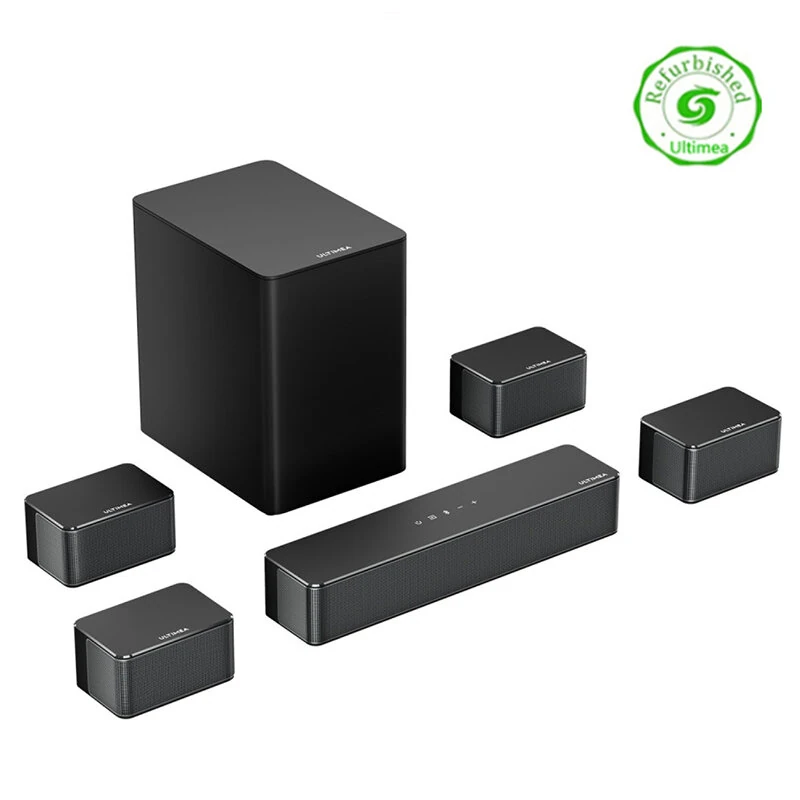 Refurbished Ultimea Poseidon D70 410W 7.1CH Soundbar Virtual Surround Sound System with Smart APP Control 4 Wired Surround Speakers and 6.5 inch Wireless Subwoofer 121 Preset EQ Matrices BassMX SurroundX Home Theater Soundbar