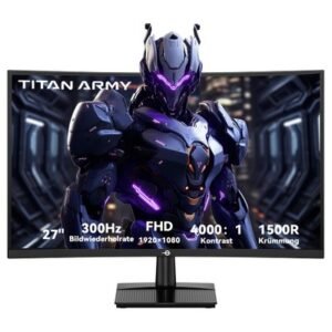 TITAN ARMY C27A1H Gaming Monitor, 27 inch 1500R Curved VA Screen, 1920*1080, 300Hz Refresh Rate,1ms GTG Response Time, FreeSync, HDR10, 4000:1 Contrast Ratio, Game+, Dynamic OD, 10 Scenario Modes, PBP & PIP Display, 2*HDMI2.0, 2*DP1.4, 1*Audio