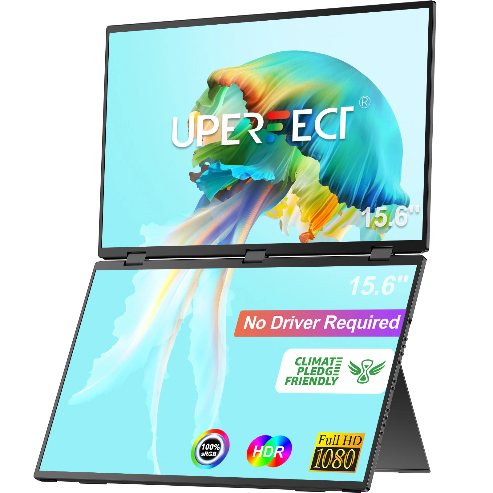 UPERFECT 15.6 inch Dual Portable Folding Monitor 1080P IPS 100 pencent sRGB,Bult in Adjustment Stand Speaker,HD USB C Plug and Play Second Screen for Phone Game Console