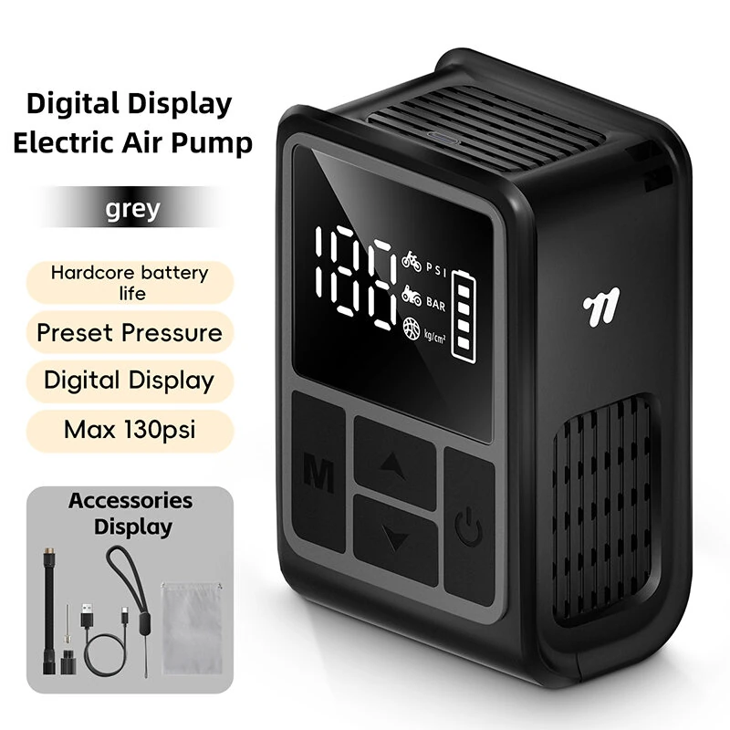 WEST BIKING Mini Electric Air Pump 130PSI Auto-Stop Portable Digital Display Type-C Charging Illuminated Inflator Pump for Bike Moto Balls